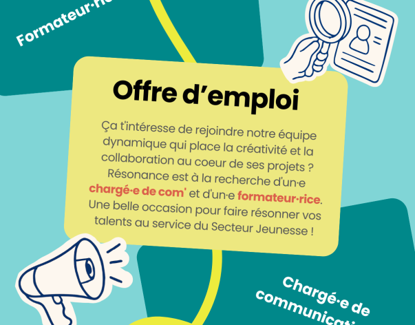 Ça t'intéresse de rejoindre notre équipe dynamique ? Résonance est à la recherche d'un·e chargé·e de com' et d'un·e formateur·ice !